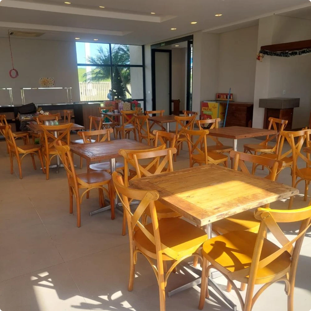 Mesas, cadeiras e buffets com design funcional e entrega rápida para estabelecimentos que prezam pela experiência do cliente.